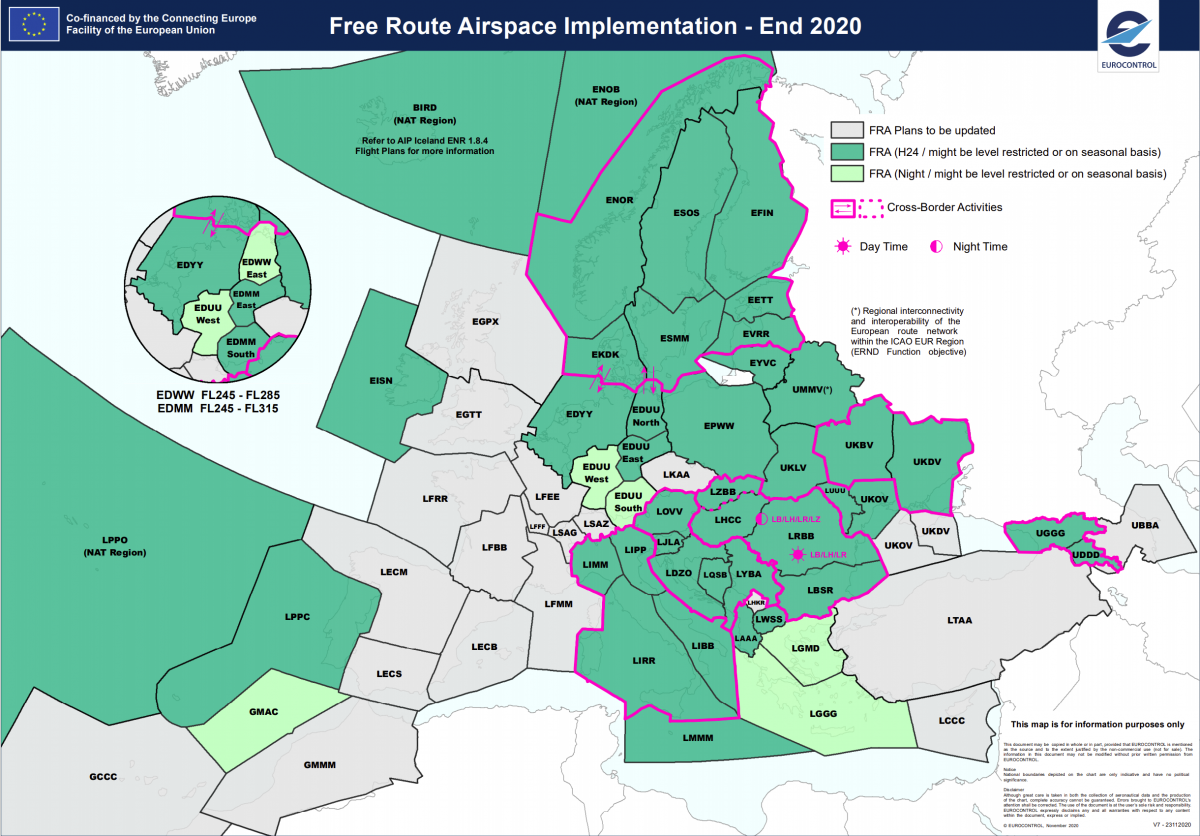 Free route airspace implementation status December 2020