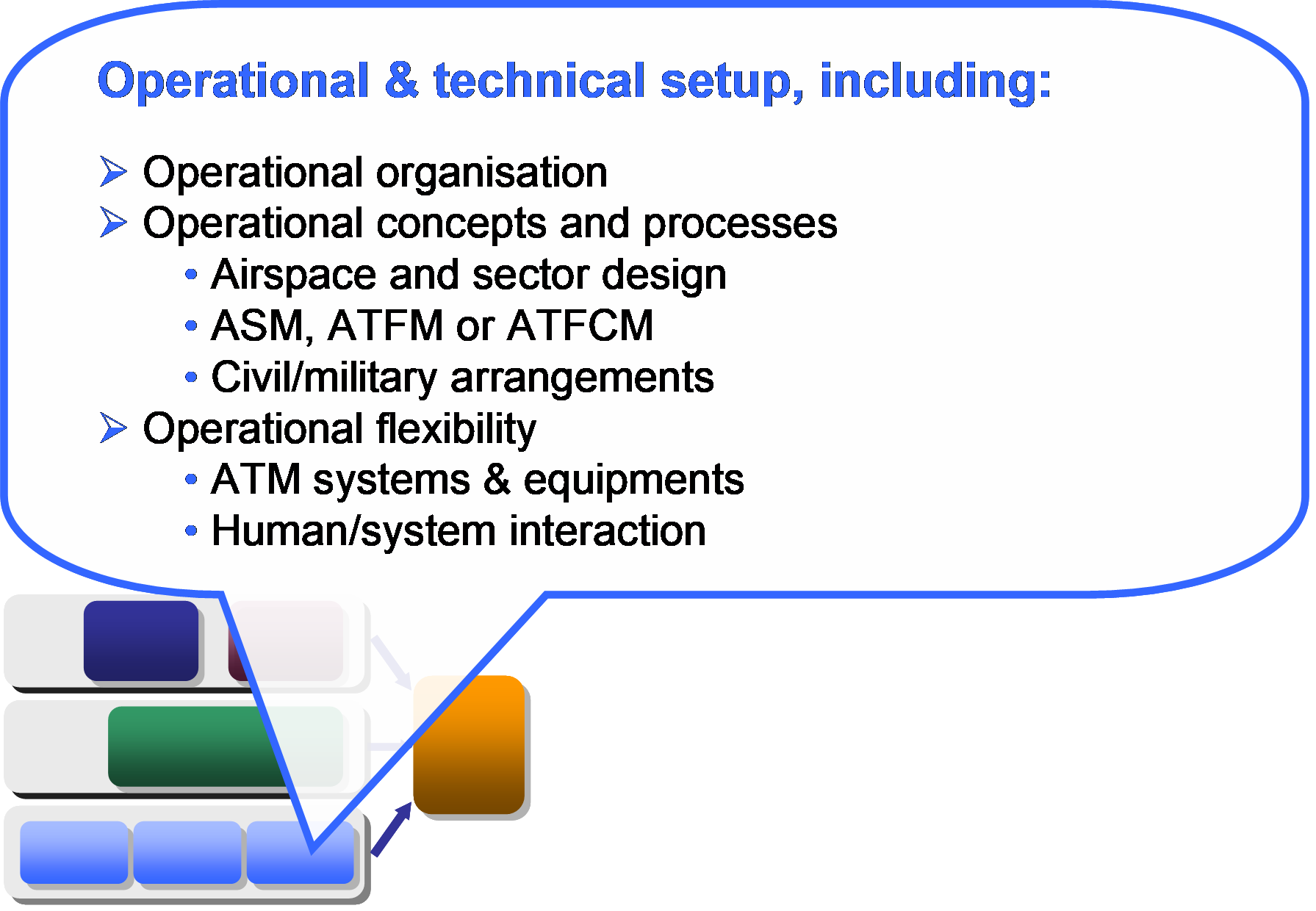 Figure 5.7 provides a list of factors that would need to be considered in a comprehensive examination of the influence of ANSP operational and technical setup on performance. They mainly relate to the following three issues: